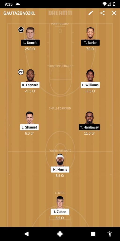Doncic, Burke, Kawhi, Williams, Hardaway, Shamet, Morris, Zubac