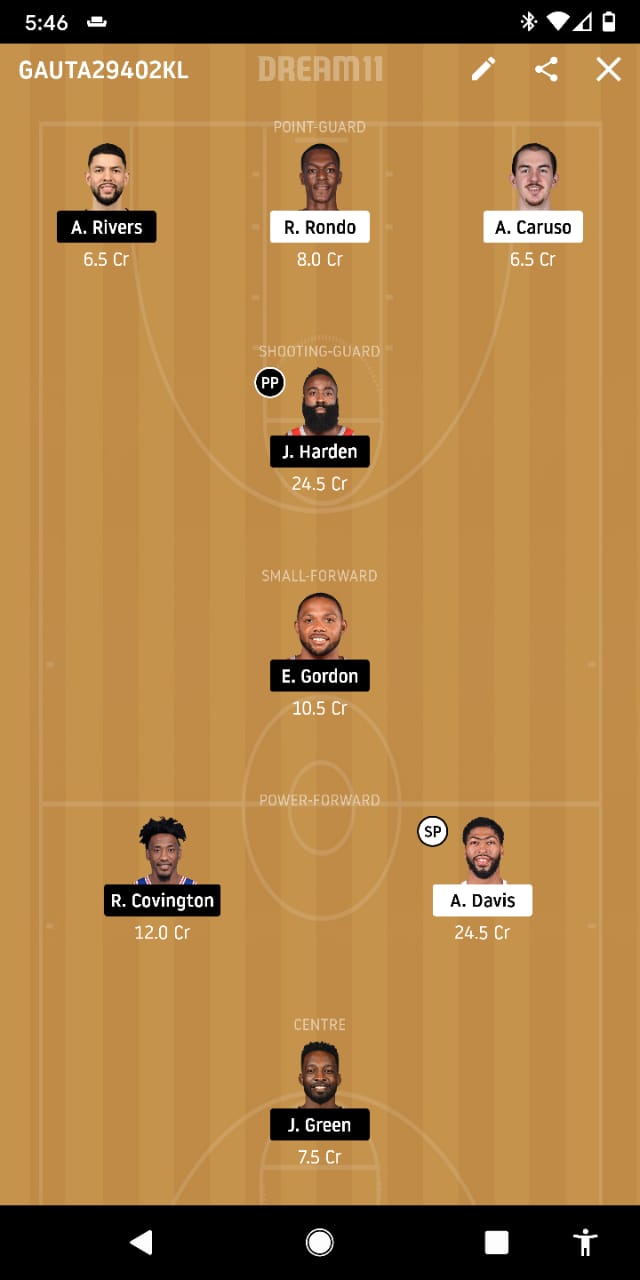 Caruso, Rondo, Rivers, Harden, Gordon, Davis, Robert, Green