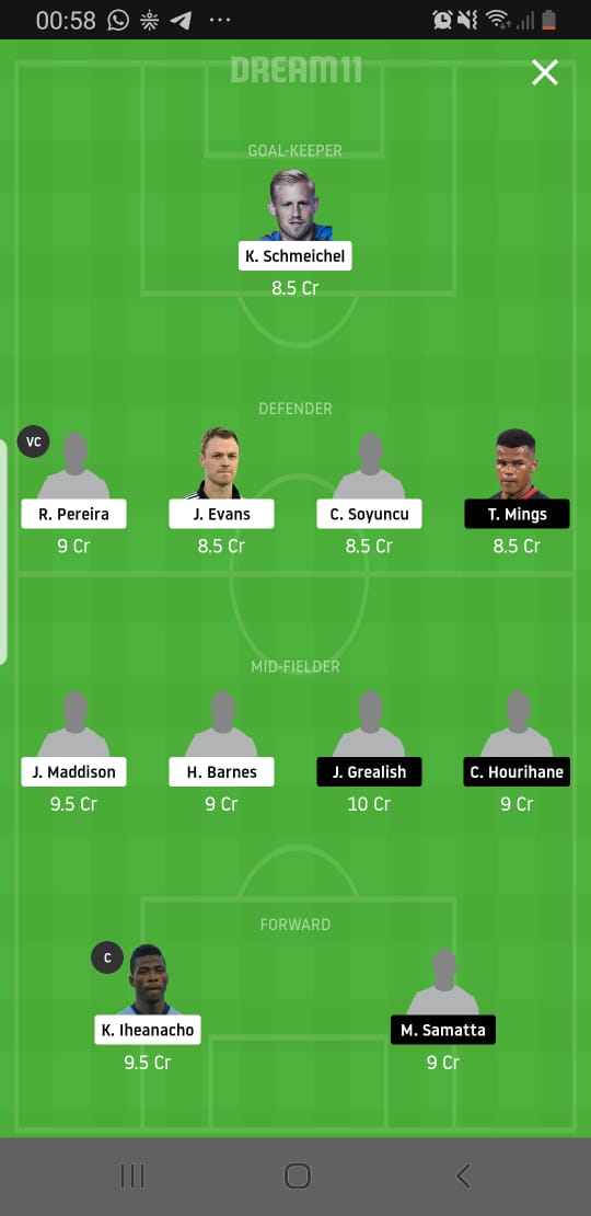 Both the CBs, Evans and Caglar Soyuncu also make their way into our unit as Leicester City’s entire backline makes an advent into our contingent for today.