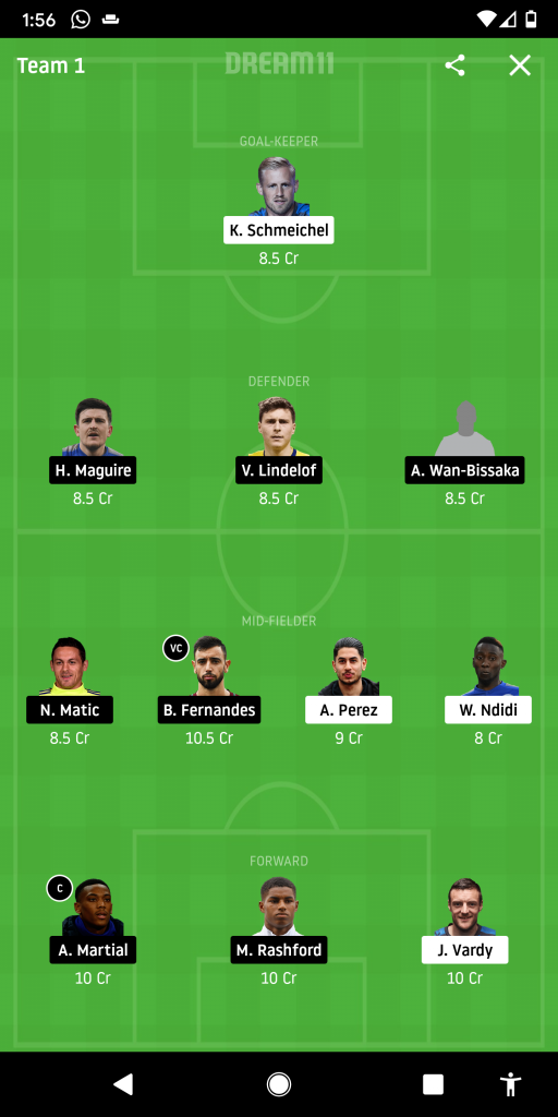 He’s joined by CDM Wilfred Ndidi who has been handed over an elevated role off late to safeguard his side’s defence at a time when the club is fraught with injuries. Manchester United on the other hand see us opt for Bruno Fernandes who has 7 assists this season inside the space of 3 months with Matic coming up along with him.