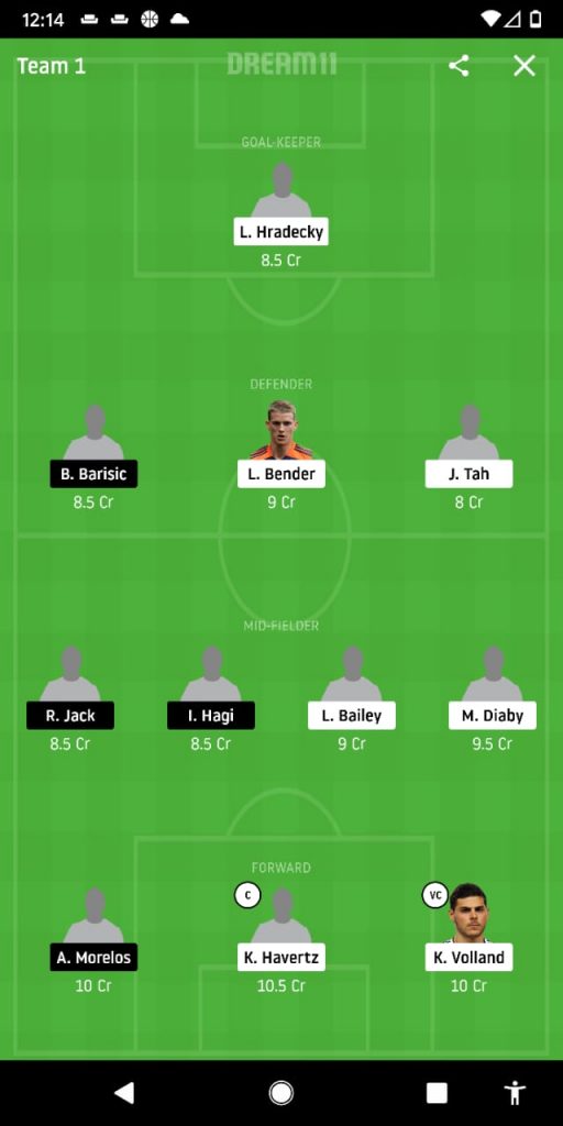 Lukas, Barisic, Tah, Bender, Hagi, Jack, Bailey, Diaby, Morelos, Havertz, Volland