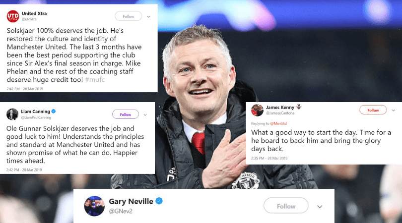 We shall look at how Twitter reacted as Ole Gunnar Solskjaer was appointed as the new permanent manager of Manchester United..