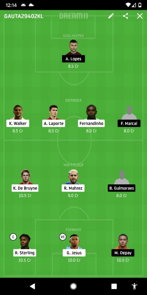 All of Kyle Walker, Aymeric Laporte and Fernandinho will be inducted into our framework from the club while Lyon will see the gustiness and gallantry of Fernando Marcal see him become the lone selection from the side.