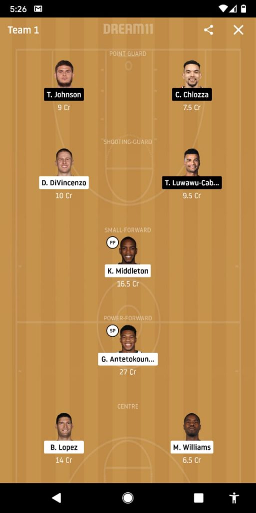 This ambit of our Dream 11 team also features the first pick from Milwaukee Bucks with Donte DiVincenzo gracing our framework. The shooting guard is set to regale us in a show of efficient and precise shooting from the deep as he looks to add to his 9 points from the foregone outing infront of a calamitous defence today.