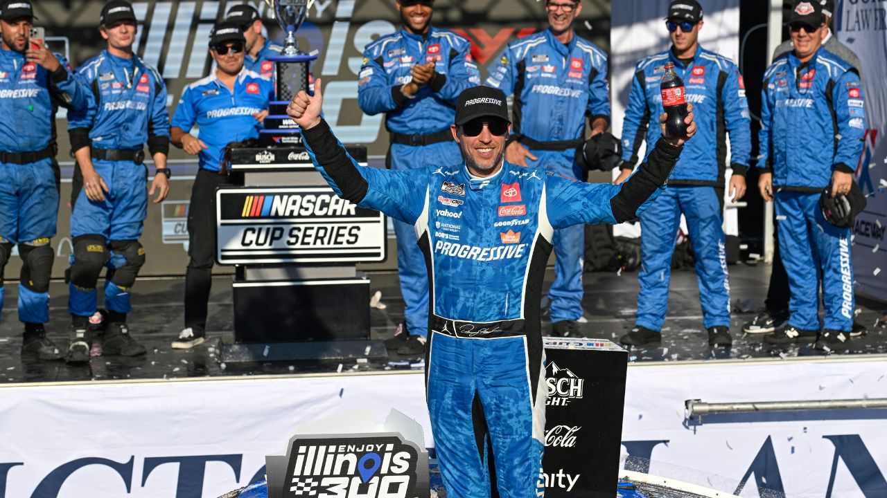 At 44, Gateway winner Denny Hamlin is 14 years older than his two other Joe Gibbs Racing teammates that are in the current NASCAR Cup playoffs, Chase Briscoe and Christopher Bell.