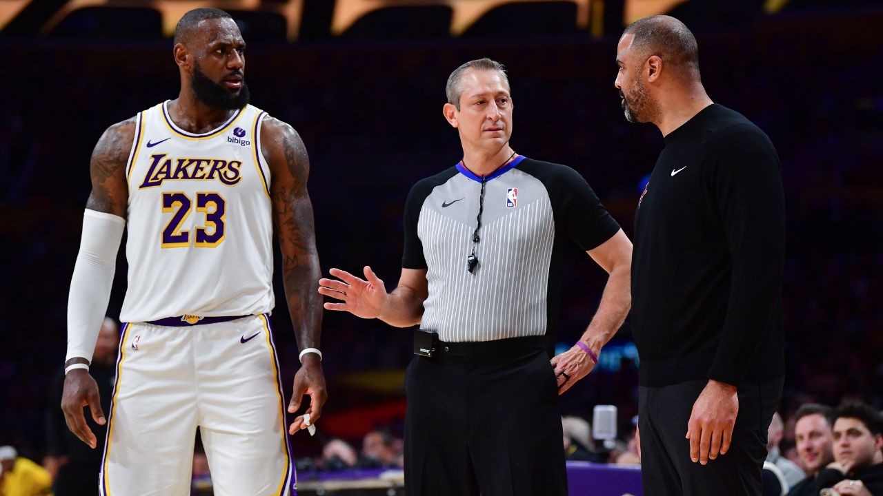 Houston Rockets head coach Ime Udoka was visibly distraught after his team lost their third straight game this season, this time against the LA Lakers. Udoka got into referee trouble in the 4th quarter after exchanging a few words with LeBron James, his 2nd technical of the game. LeBron had walked up to the 46-year-old, who continued to talk with James in front of the referee.