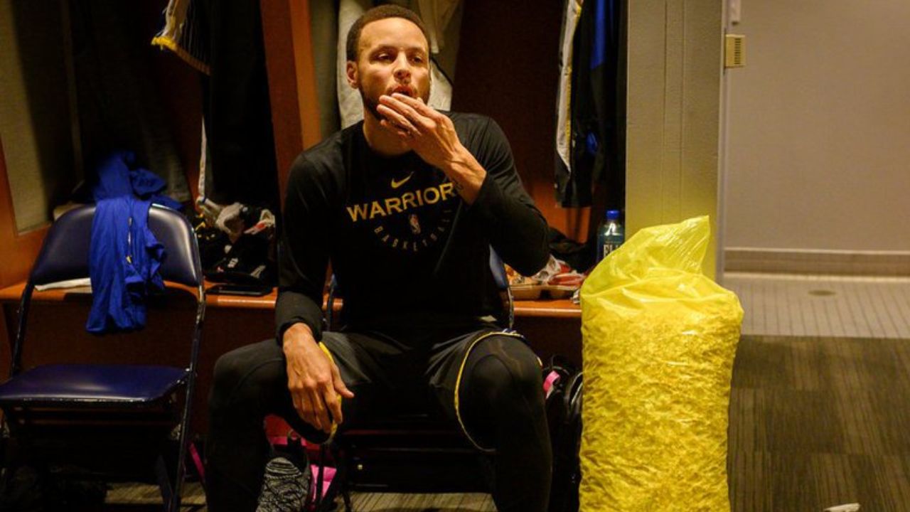 Stephen Curry is one of the best entertainers in the league. But every now and then the Golden State Warriors leader does enjoy tossing his legs up and eating some popcorn. Quite literally.