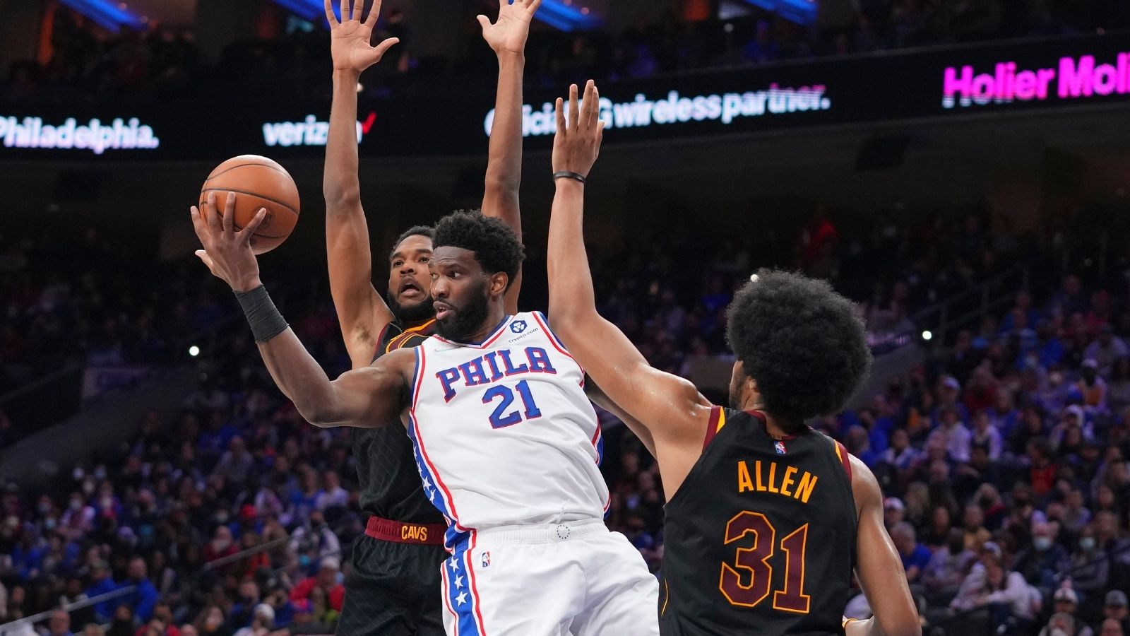 Joel Embiid dominates Jarrett Allen and Evan Mobley in a single play