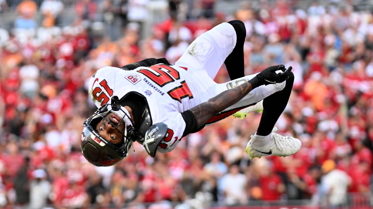 Johnson’s hilarious misunderstanding came moments after his 45-yard touchdown from Mayfield that extended Tampa Bay’s lead to 27-19 late in the third quarter. The rookie couldn’t resist celebrating and cartwheeled into the end zone before sticking a clean backflip as his teammates erupted. As did the fans with the MVP chants.