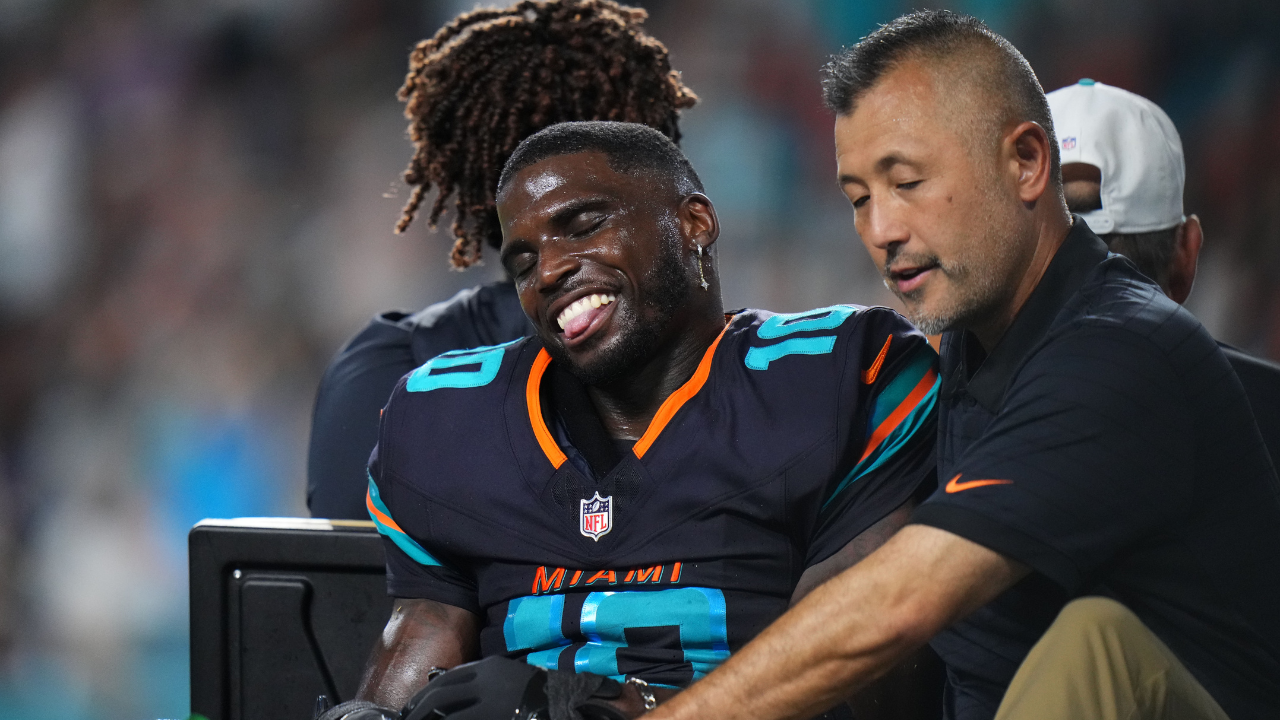 Before the injury, Hill had been as efficient as ever, hauling in all six of his targets for 67 yards. At the time of his departure, Miami led 10-3. Just three plays later, Tua Tagovailoa connected with tight end Darren Waller for a touchdown to extend the Dolphins’ lead to 17-3, but the momentum of the night was overshadowed by Hill’s absence.