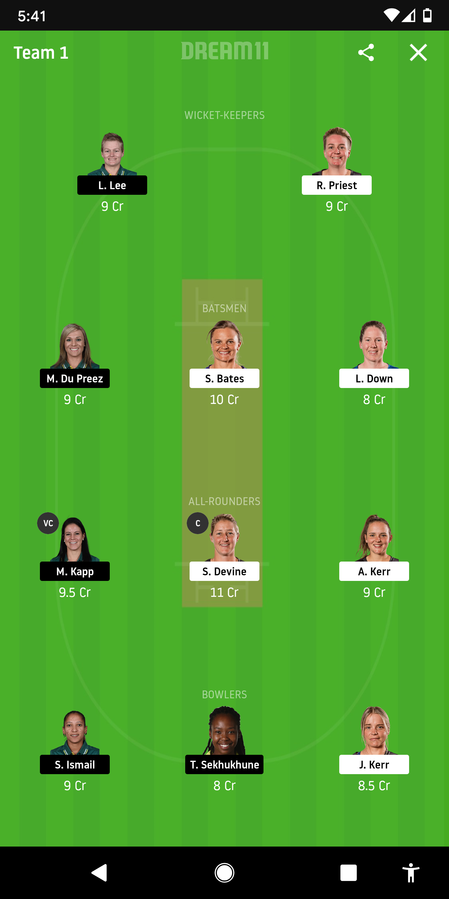From New Zealand meanwhile we are wrapping up our Dream 11 side with the pick of Jess Kerr.