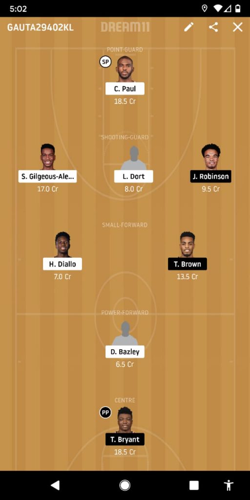 Up against a Washington Wizards defence which is on a never ending wayward spiral, Oklahoma could end up giving a bevy of lesser played names time out in the middle. And someone who can benefit from that is Darius Bazley to add to the 12 points his reverse scoops earned him the last time around.
