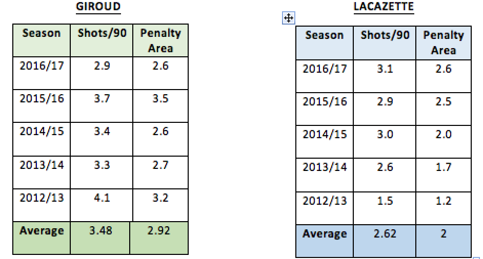 Olivier Giroud or Alexander Lacazette- Statistical analysis on who Wenger should play