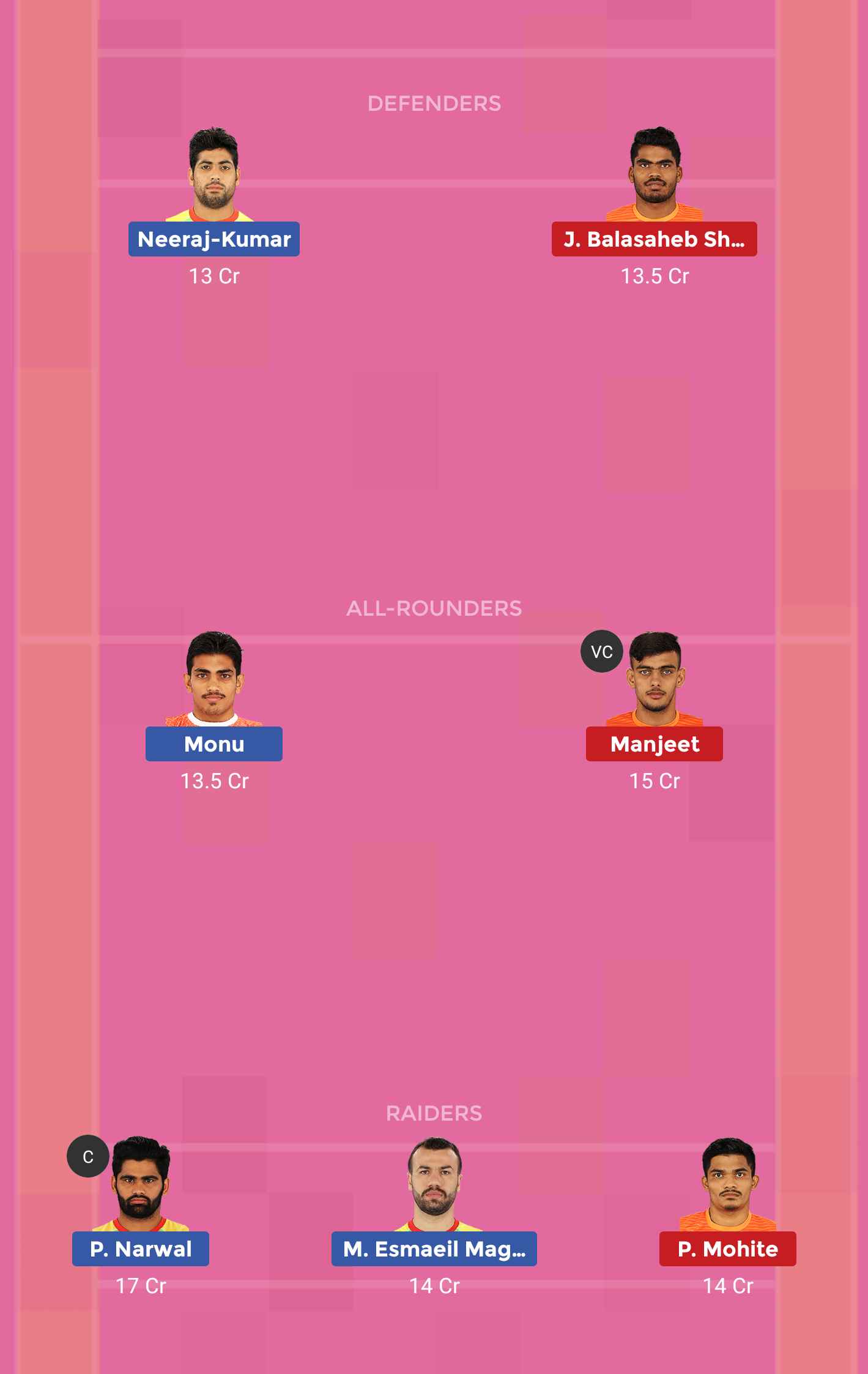 We have kept things balanced in this segment of our side, getting in the one player apiece from either side, beginning with Jadhav Balasaheb Shahaji from Puneri Paltan. He recorded a high 5 yesterday alongside captain Surjeet Singh and the duo will need to right on Pardeep Narwal today, curtailing his raids and trying to ensure he spends a good amount of the match outside the mat.