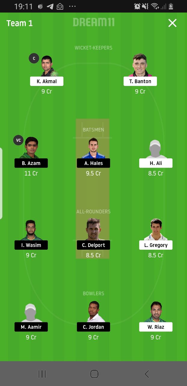 Chris Jordan (Price 9) and Mohammad Aamir (Price 9) will be our bowlers from the Karachi side. These both are one of the best wicket-takers of the tournament and they get on the song, then they will be unstoppable.