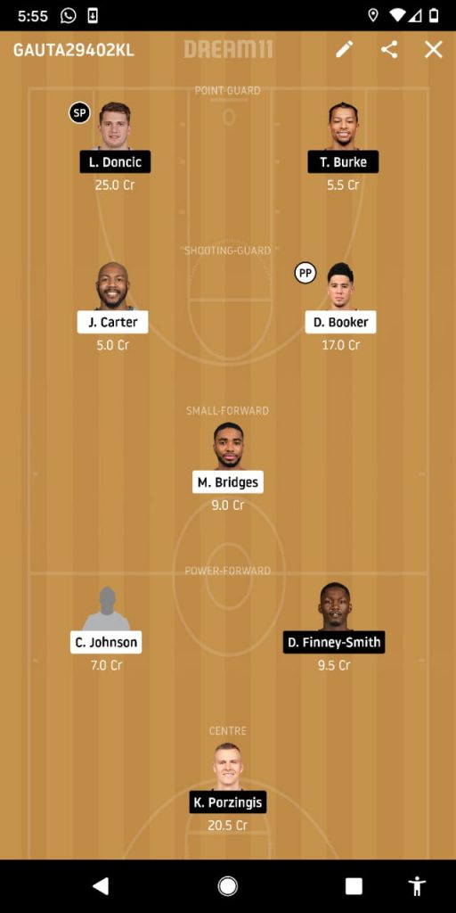 Doncic, Burke, Booker, Carter, Mikal, Dorian, Corey, Kristaps
