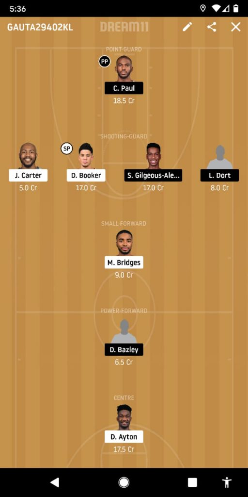Paul, Shai, Booker, Carter, Dort, Mikal, Bazley, Ayton