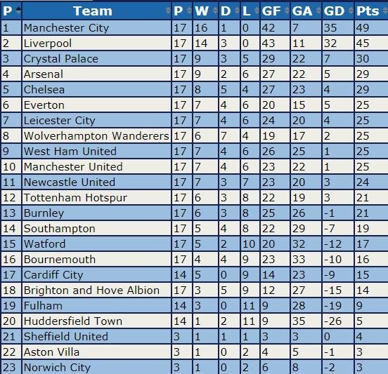 Form table shows the gulf of difference between Manchester City, Liverpool and other Premier League teams.
