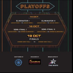 Just like last year, the knockout phase will consist of two eliminators between the 3rd and 6th team and the 4th and 5th team. The winners from the eliminators will then face the two top ranked teams for a place in the final. The tournament will conclude on 19th October.
