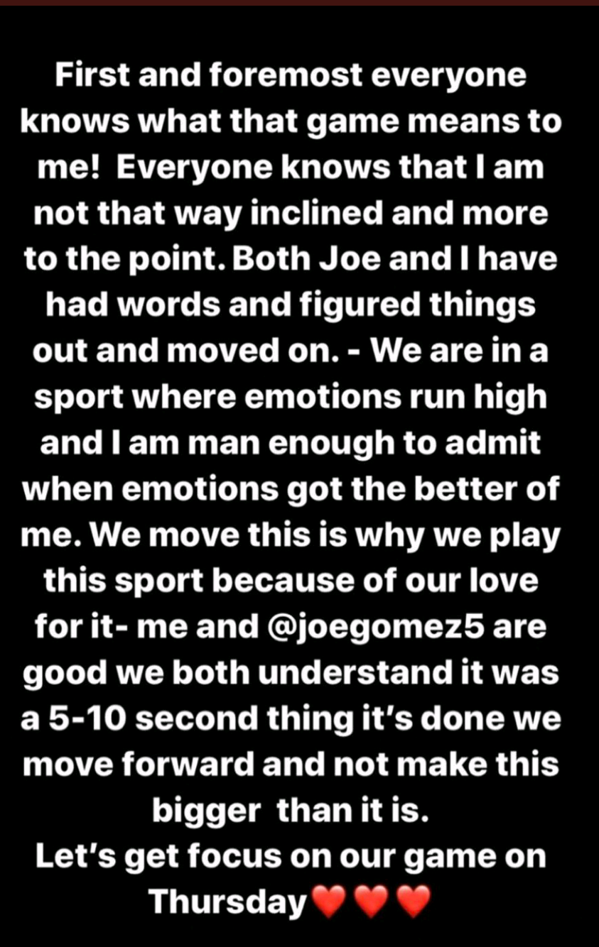 Raheem Sterling has since apologised to Joe Gomez and the rest of the England squad for his behaviour. He has also released a statement regarding the incident on his Instagram.