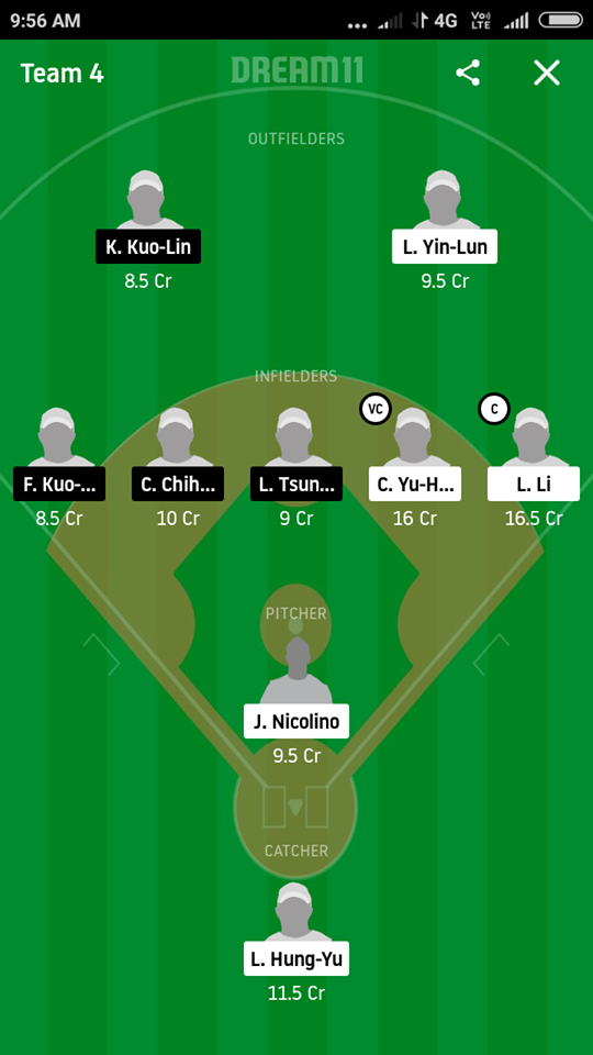 C. Yu-Hsien and K. Yung-Wei fill the remaining spots in my team. Having scored a maximum 17 point in the “RBI” section, Yu-Hsien’s selection is highly likely to work in your favour.