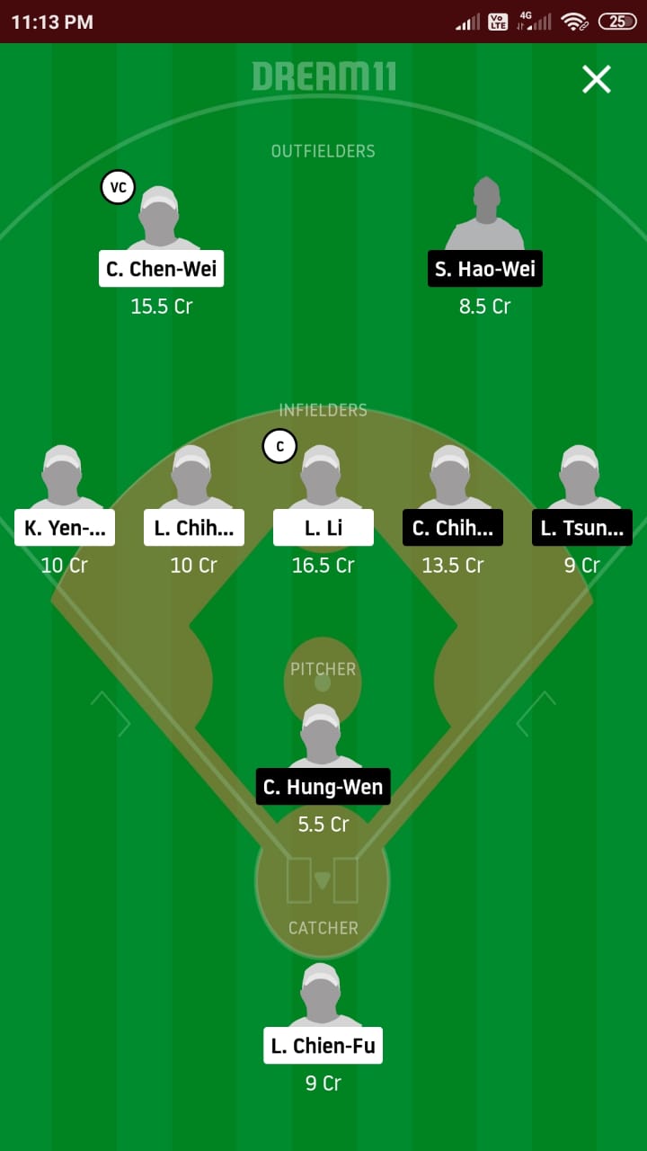It is worth mentioning that Chen-Wei will also be the vice-captain of my fantasy team for this match. In Fubon Guardians’ S. Hao-Wei, I have picked one outfielder from their team as well.
