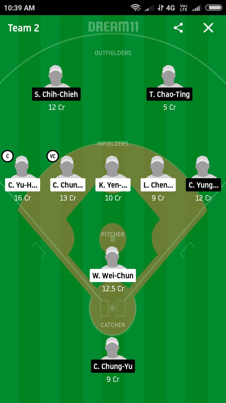 Sticking to my strategy of including the best infielders from the top team, I have the likes of both Chu. Yu-Hsien and L. Li in my team. The highest scorers in the category, both the players are most likely to work wonders for you tomorrow.
