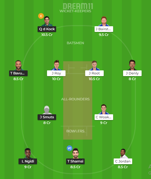 Quinton de Kock will be the captain of the day while Tabraiz Shamsi will be the vice-captain.