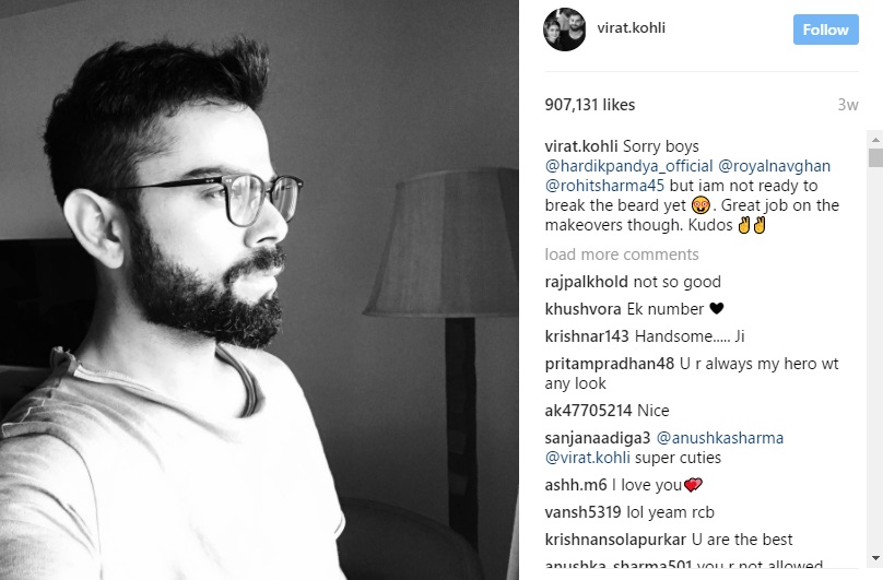 “Sorry boys, but I am not ready to break the beard yet. Great job on the makeovers though. Kudos,” Kohli wrote.