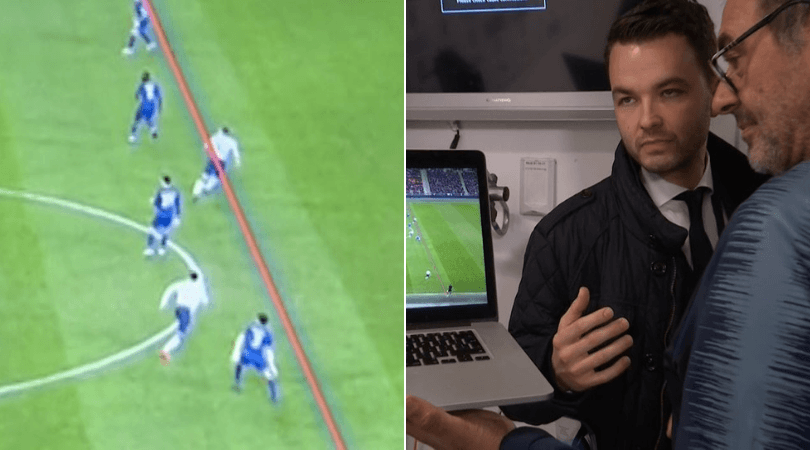 Maurizio Sarri brings out Chelsea’s analysis footage of the game on a laptop to prove @HKane was offside 👀 pic.twitter.com/W4ZSj3o27r