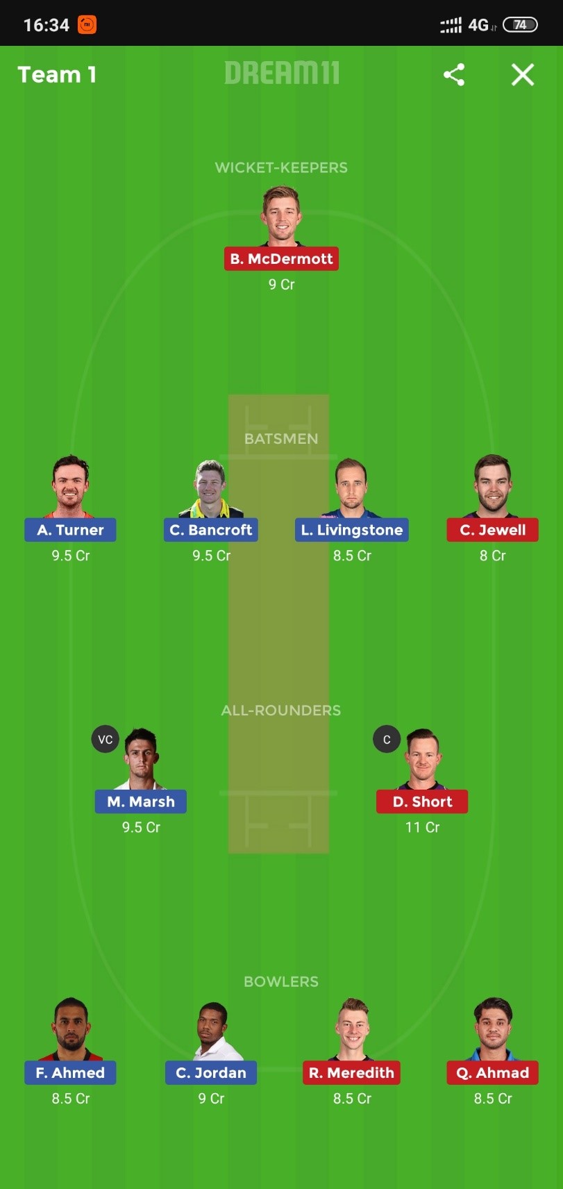 SportsRush Featured Dream XI Team for the Game