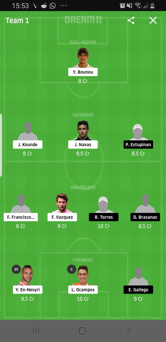 It’s a discourse which sees us repose faith in an entire trio from the setup with us opting for Jesus Navas, Sergio Reguilon and Diego Carlos from the side, a trivalent which looks set to clampdown on the opposition. Elsewhere, the one name will make its place into our contingent from the opposition as well with us moving in with Pervis Estupinan for the clash.
