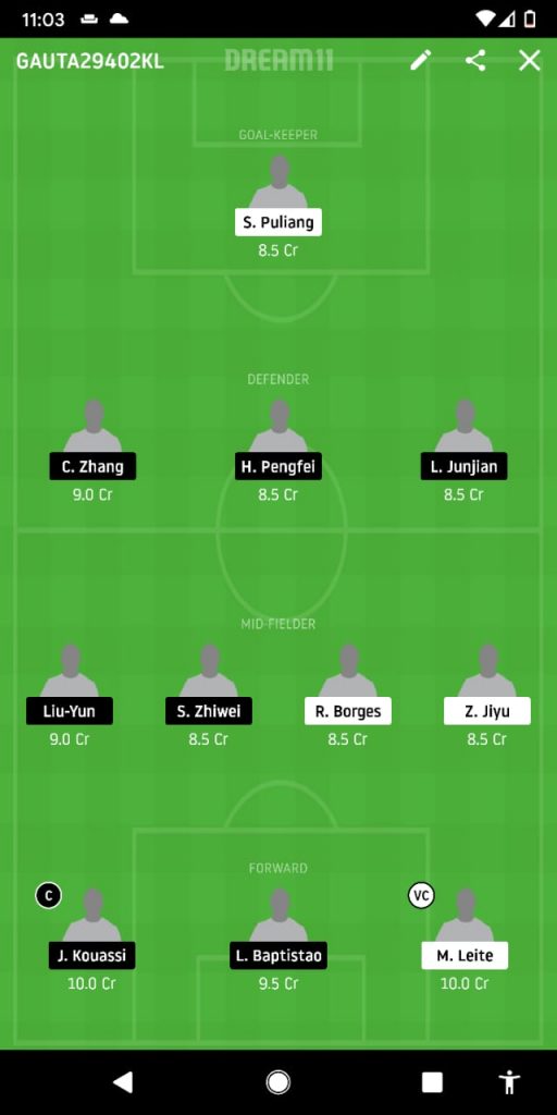 Having let in the one goal lesser than Ever Bright is what saw the wind sway in Wuhan Zall’s favour for this docket. We are going to be opting for a triad from the club with Chenglin Zhang becoming the first player to be inducted in our setup given the 2 goals he has for the side.