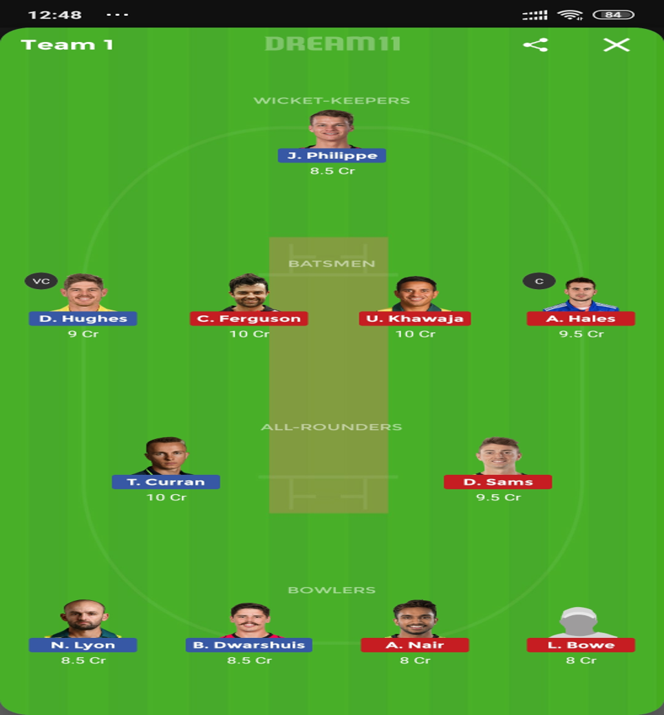- Arjun Nair (Price 8):- Nair has been the third-best wicket-taker for Thunder after Sams and Morris. He is a very underrated spinner and is a very good wicket-taker.
