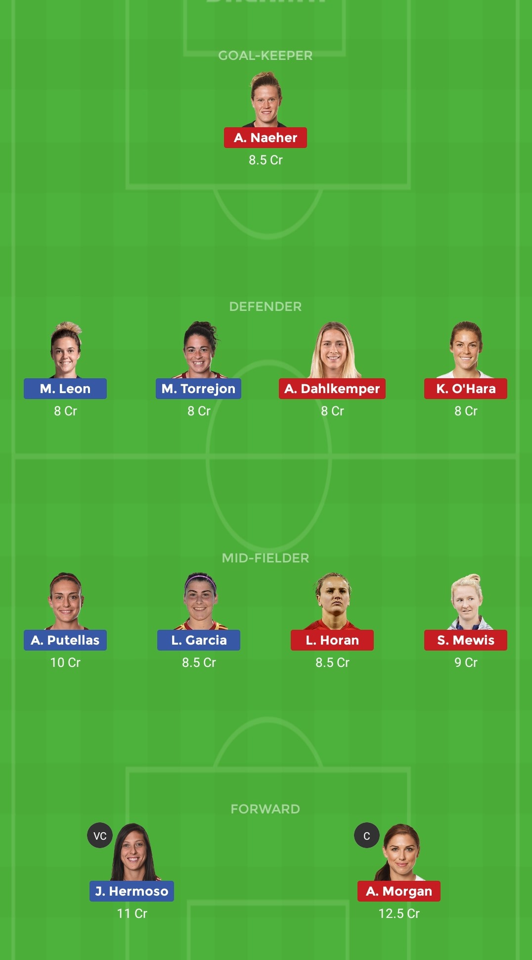 Alyssa Naeher: The American international has kept 3 clean sheets in the tournament so far, with one against Sweden. She has only had to make 4 saves in the tournament because of the overall functionality of the outfield players. However, this is going to be a tad bit difficult comparatively against Spain, but we can always expect Naeher to deliver, when needed.