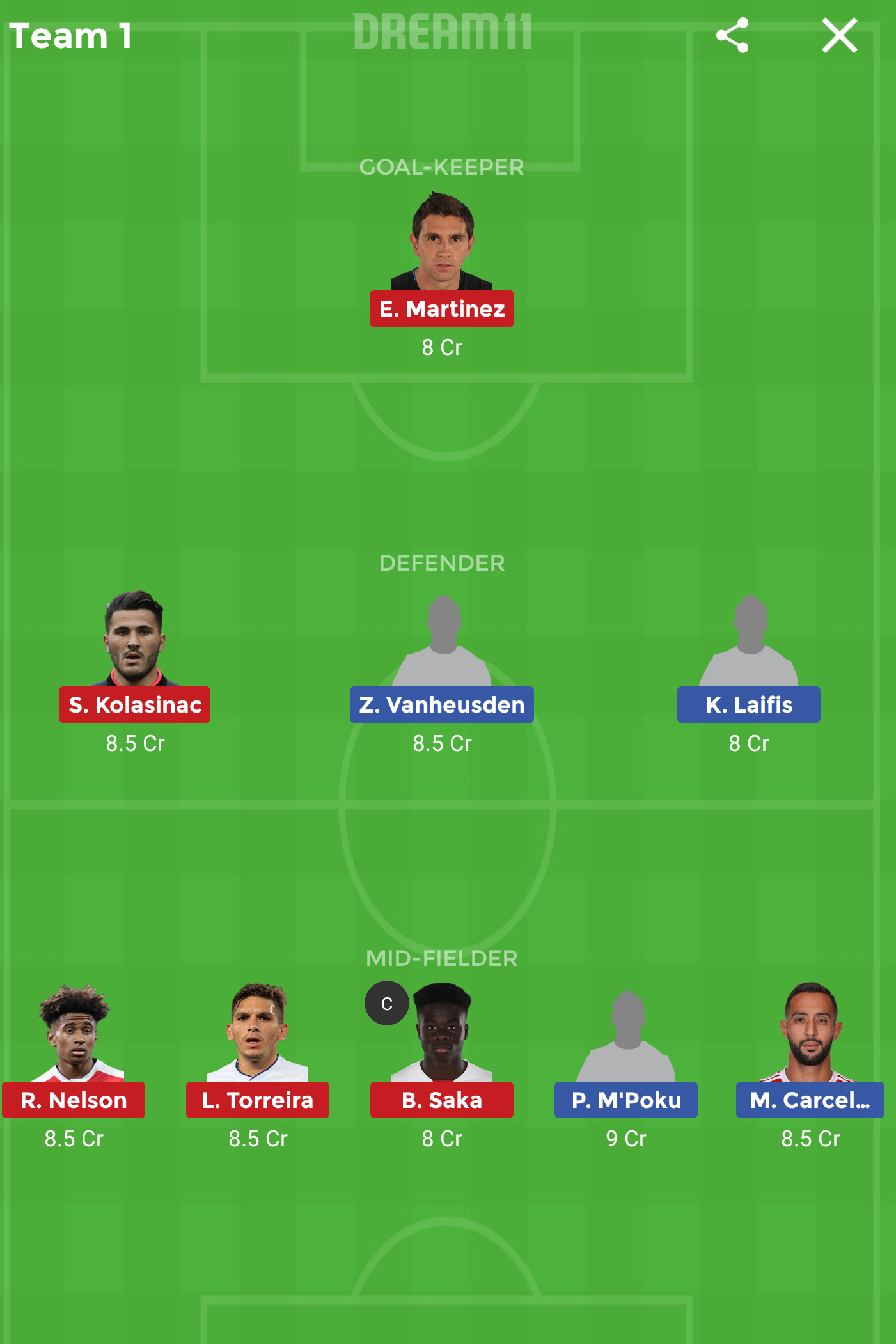 - Martinez, Torreira, Saka, Aubameyang