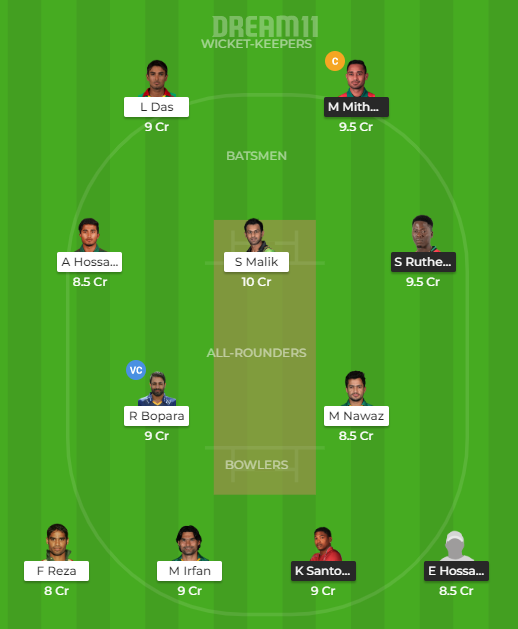 The first two bowlers in our dream XI team will be Mohammad Irfan and Ferhad Reza. The tallest player to ever grace the game, Irfan has bowled with hostility and has bagged some important wickets. He bagged 3 wickets against the Rangers in the last two matches and will look to carry on the good work. Ferhad Reza has also been a wicket-taking option and has bowled pretty well so far.