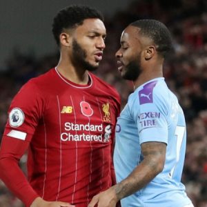 Joe Gomez lifts Raheem Sterling like a child during their altercation in Liverpool vs Man City match