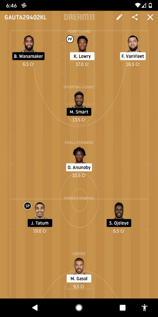 Lowry, Fred, Brad, Smart, Anunoby, Tatum, Semi, Gasol