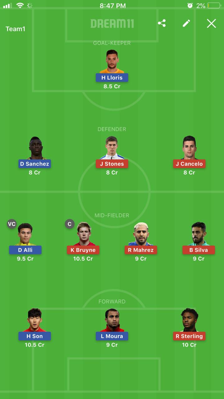 As I anticipate the midfielders to play a massive role in this game, I have the two inform players as my power players. Kevin De Bruyne will be the captain and Dele Alli will be the Vice Captain. Both have the capabilities of both scoring and assisting goals in big matches.