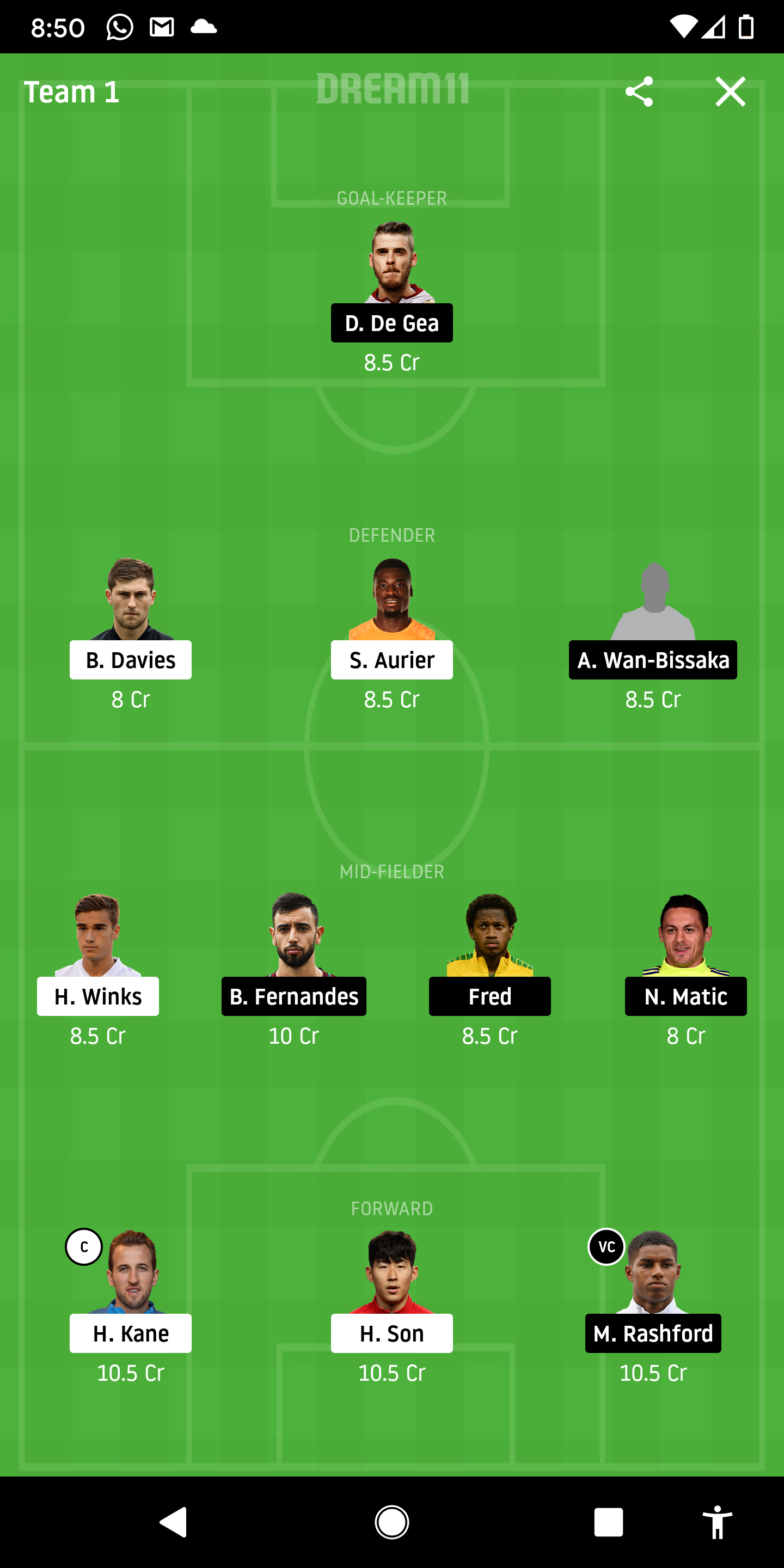 Matic comes in alongside him with Fred with us opting for the CDM pairing owing to their ability to entrap the opposition in deadlock with their strong of tackles and blocks. Elsewhere, it’s the singular pick from the home side of Harry Winks with the midfielder set to be asked to hold fort in the centre today.