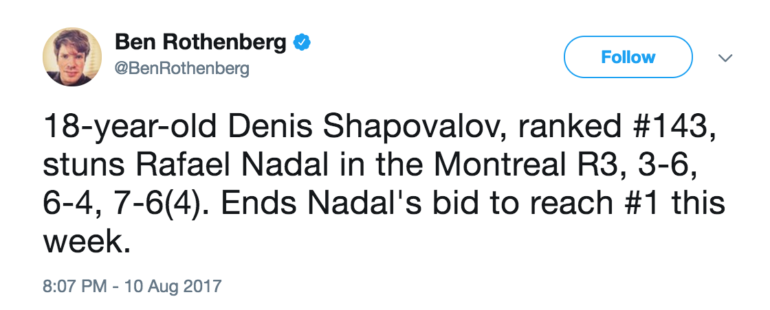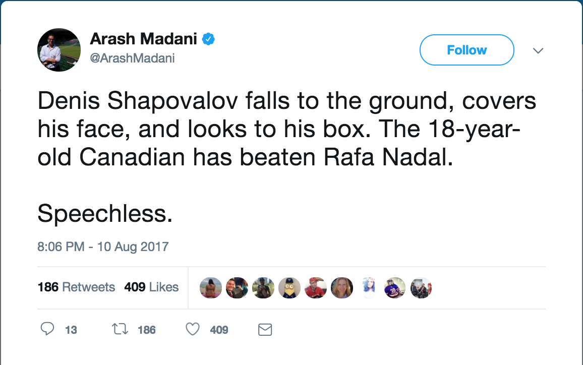 Twitter erupts as Denis Shapovalov upsets Rafael Nadal