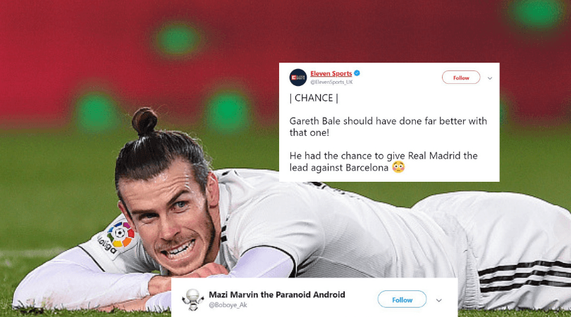 Twitter mocks Bale as he misses chance to win it for Real Madrid at Nou Camp
