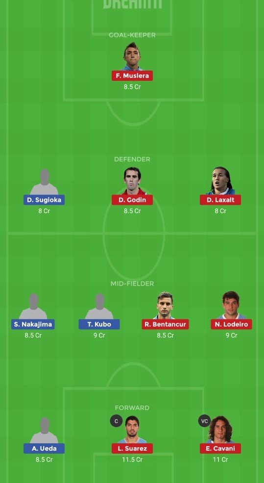 Uruguay Vs Japan Dream11 Team