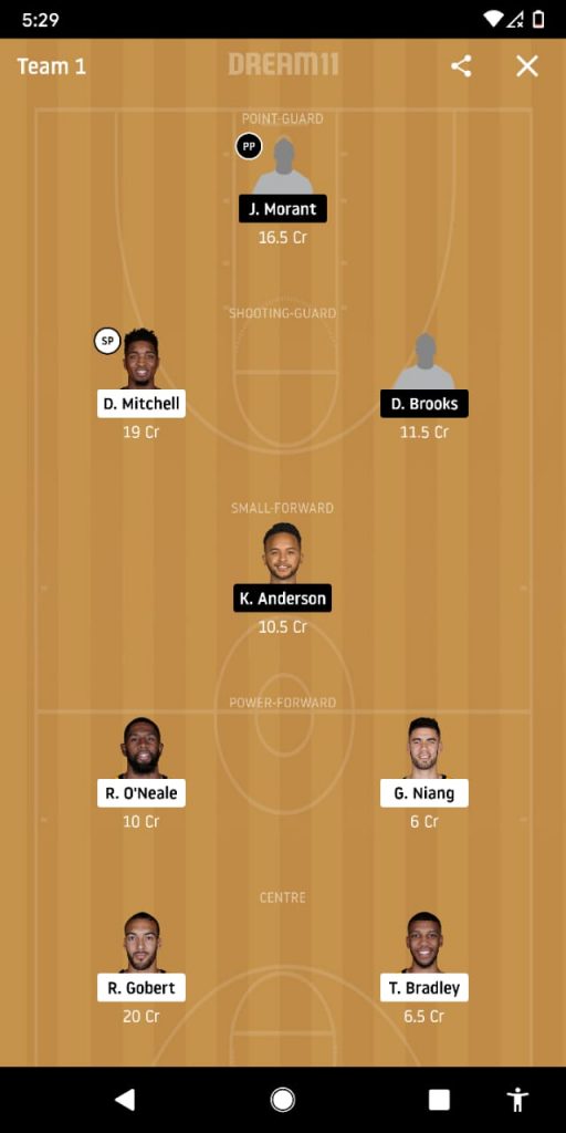 Morant, Mitchell, Brooks, Anderson, Royce, Niang, Gobert, Bradley