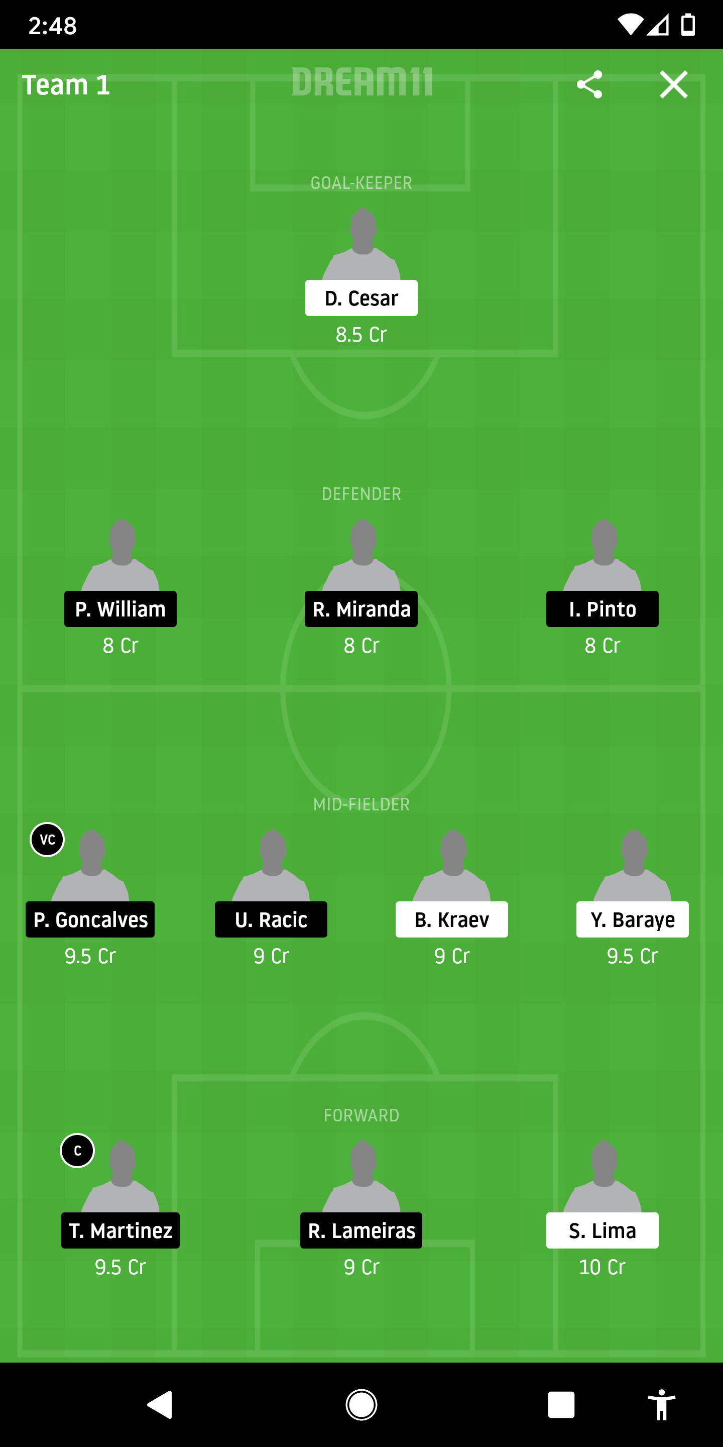 Cesar, Pinto, Miranda, William, Pedro, Racic, Baraye, Kraev, Lima, Ruben, Toni