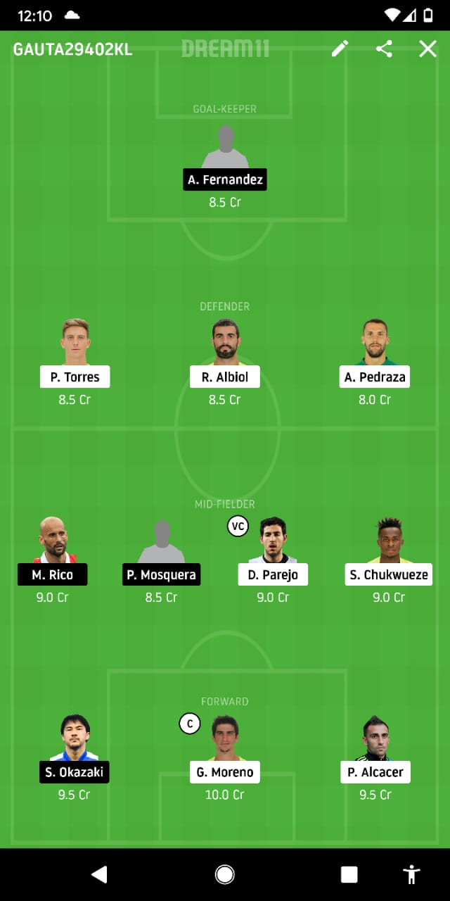 Their astute brand of defending sees us opt for a three man backline from the club for this one. All of the trio of Pau Torres, Raul Albiol and Alfonso Pedreza will be inducted in our setup for the forthcoming encounter.