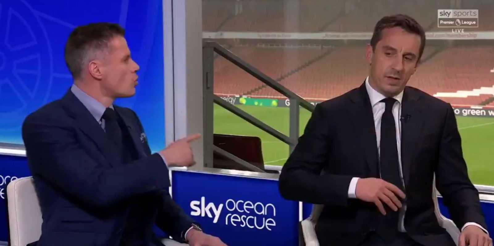 WATCH: Carragher and Gary Neville exchange heated words after Manchester United’s loss to Arsenal