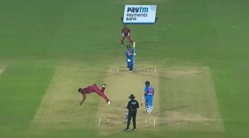 During the first T20I of the ongoing West Indies’ tour of India at the Rajiv Gandhi International Stadium in Hyderabad, West Indies captain Kieron Pollard grabbed a tremendous catch off his own bowling to dismiss India batsman Shreyas Iyer.