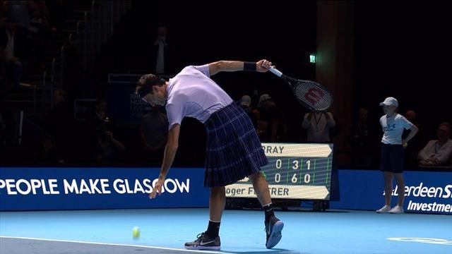 WATCH : Roger Federer puts on a kilt as he faces Andy Murray in a charity match